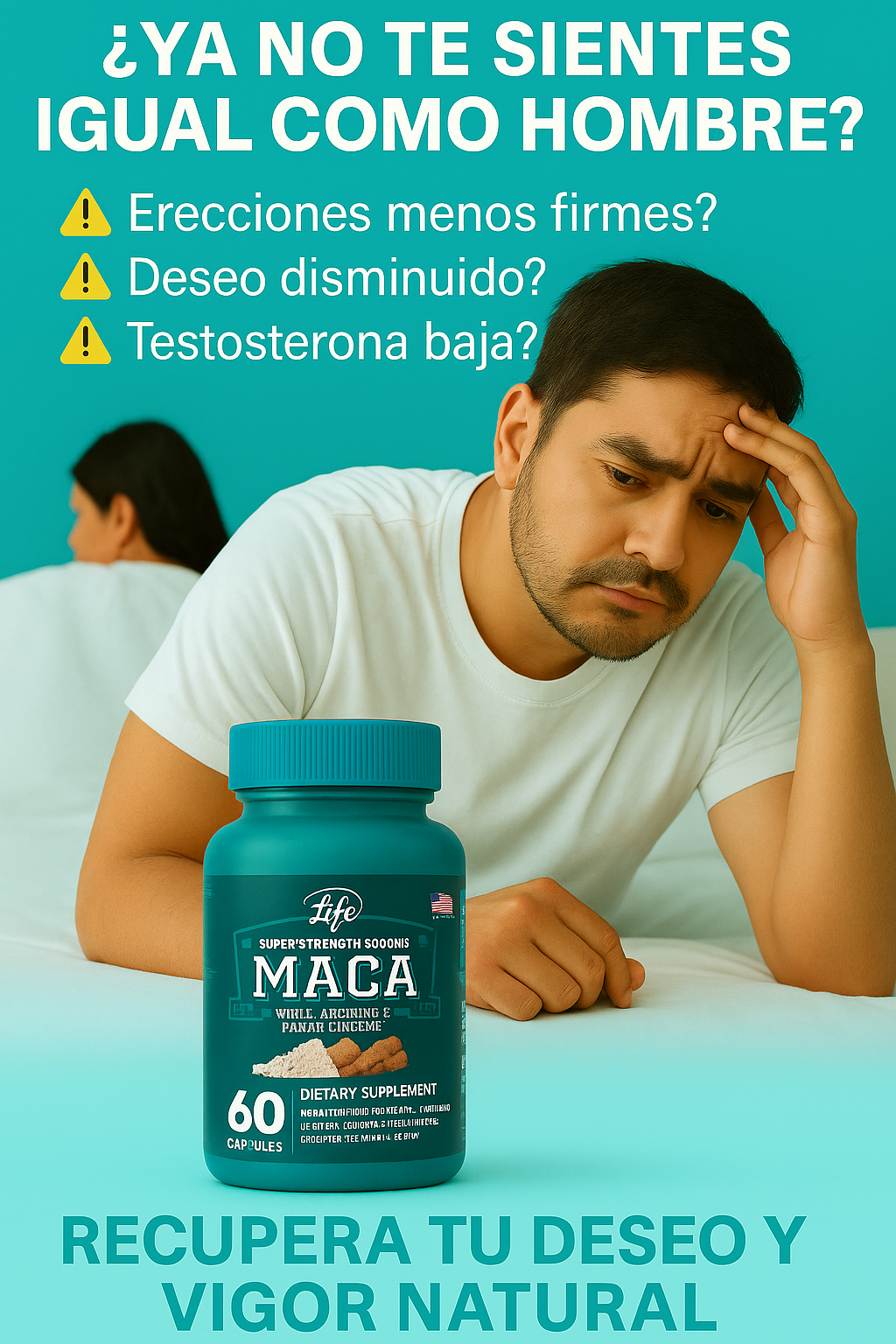 .🌱 Con Maca 5000mg en cápsulas, recuperas tu vitalidad de manera natural. 60 cápsulas fáciles de tomar que te ayudan a mantener energía estable, enfoque mental y un mejor rendimiento físico y emocional.